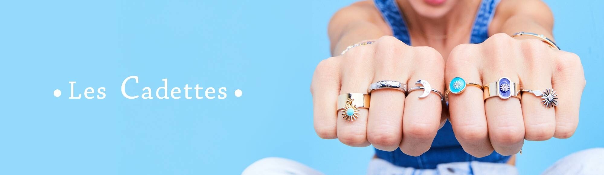 Les bijoux Les Cadettes varient les styles et permettent de s’habiller de plusieurs colliers, de porter plusieurs bracelets ou plusieurs bagues sur un doigt. Faîtes-vous plaisir en cumulant ces petits bijoux. Certains se parent de petites perles ou de détails colorés, d’autres révèlent de jolis effets de brillance grâce à leur serti d’oxydes de zirconium ou leur soigneuse finition laque.
