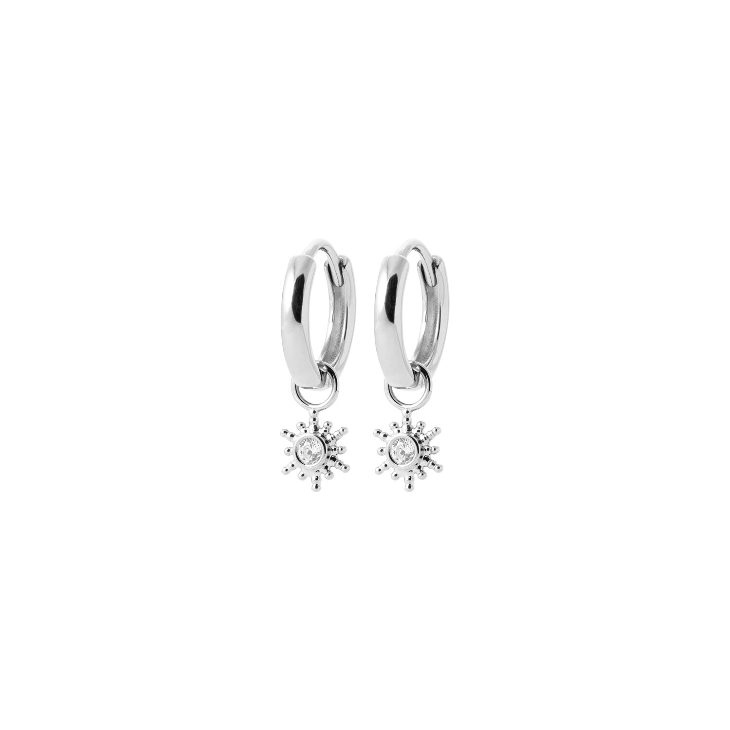 Boucles d'oreille pendantes créoles en argent rhodié et oxydes de zirconium