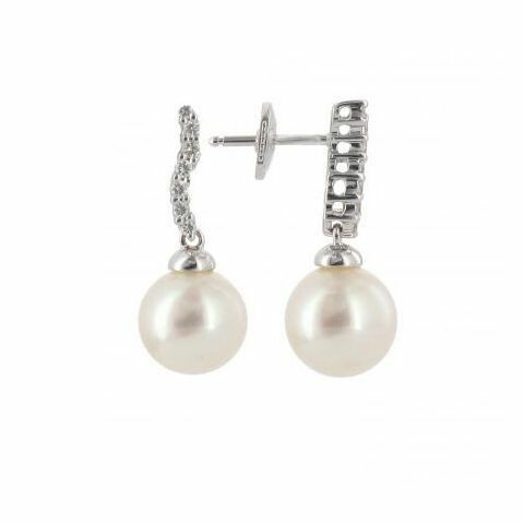 Boucles d'oreilles en or blanc, diamants et perles de culture