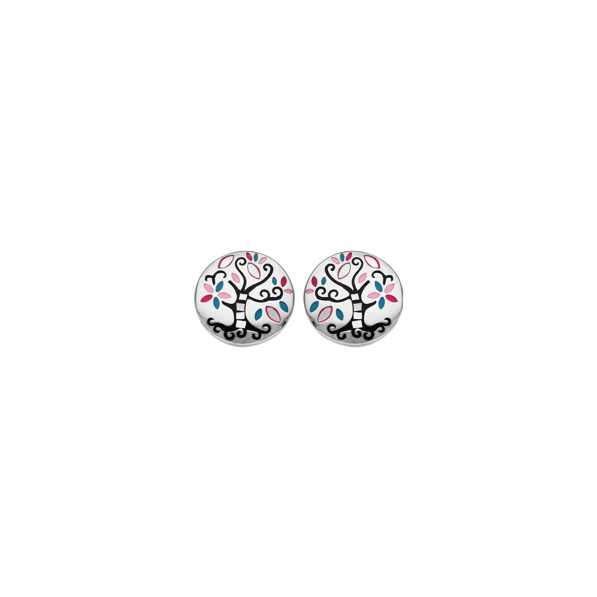 Boucles d'oreilles tige stella mia rond arbre de vie noir et nacre