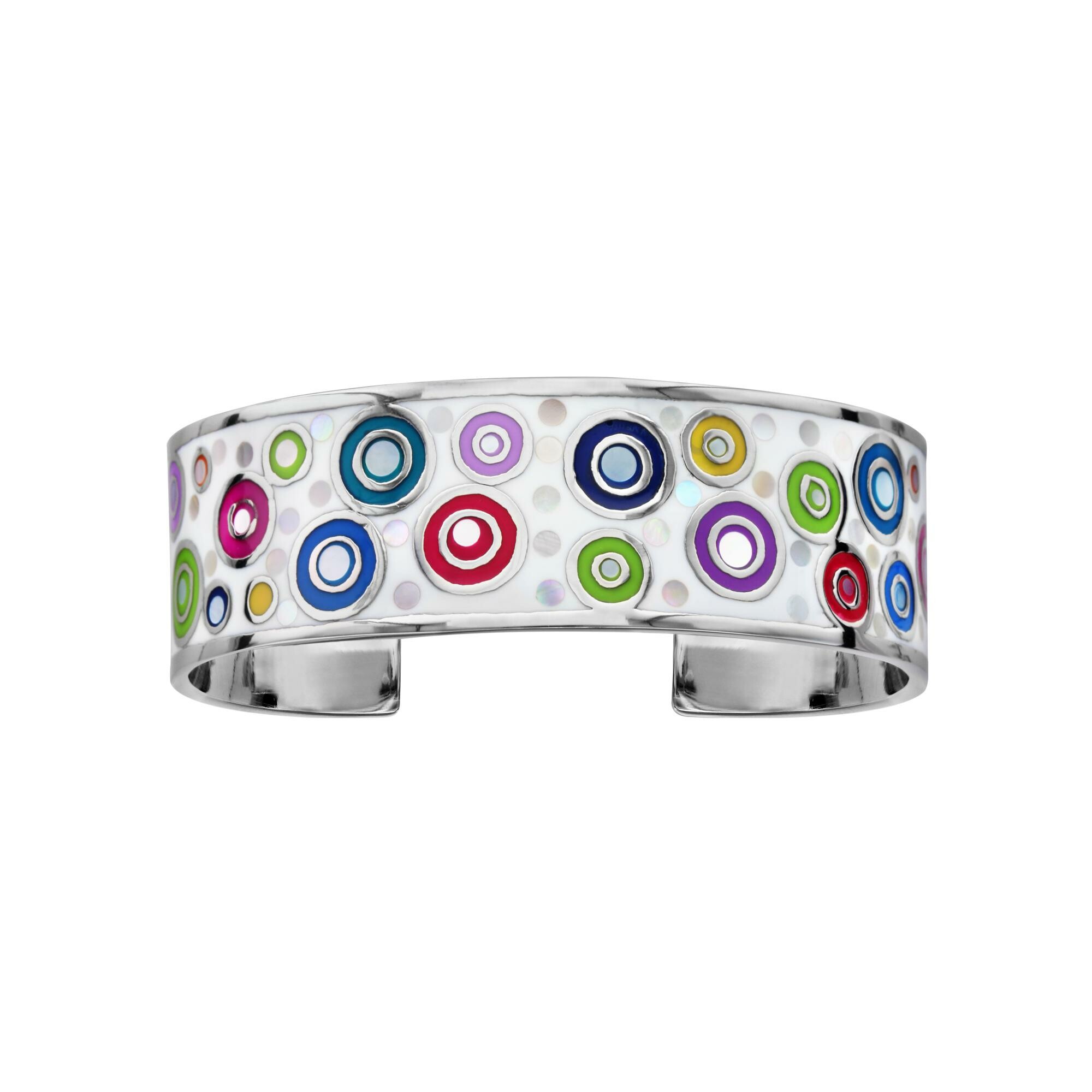 Bracelet acier stella mia motif rond avec nacre diam 59mm interieur