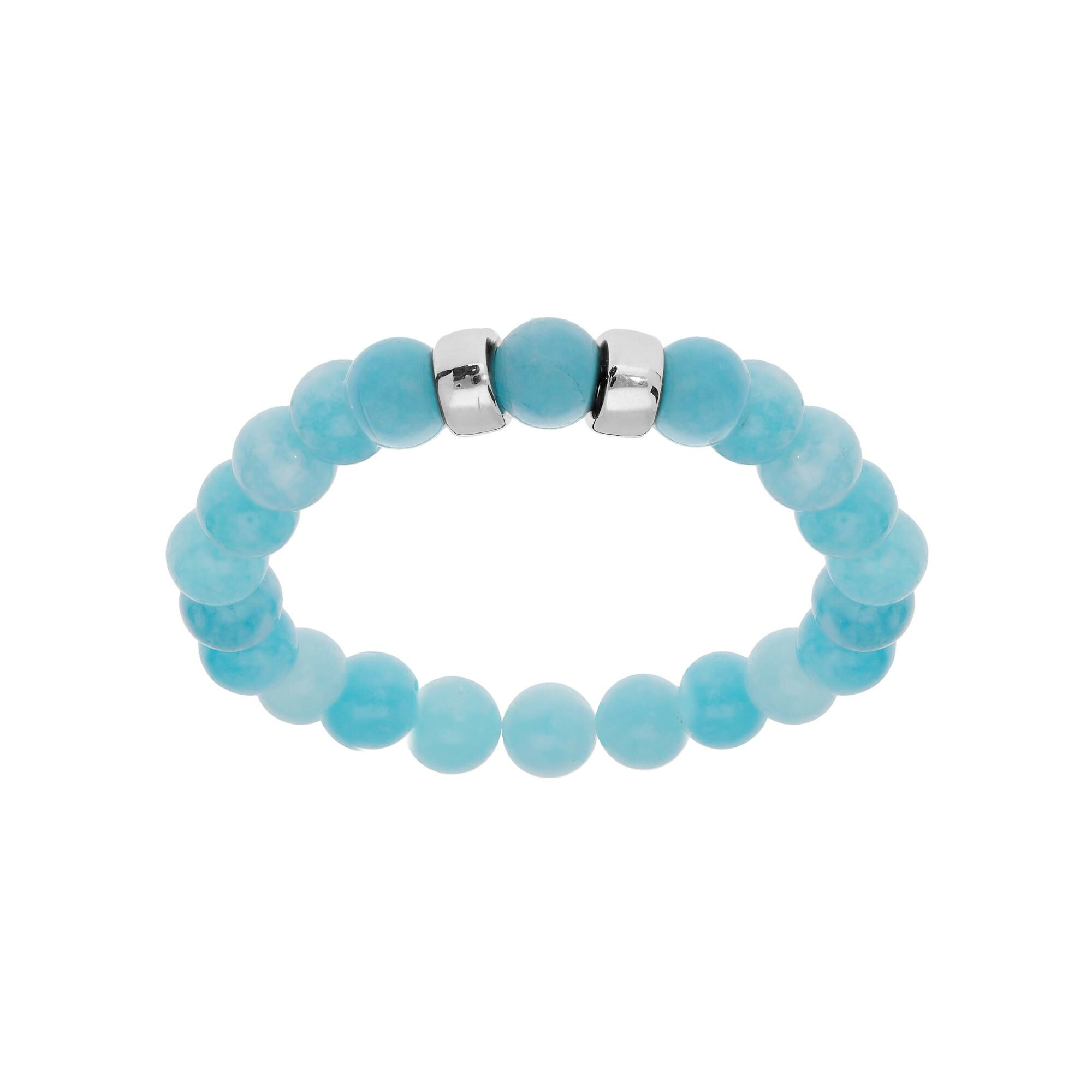 Bracelet argent rhodié extensible boules jade bleu véritable 2 charms à graver