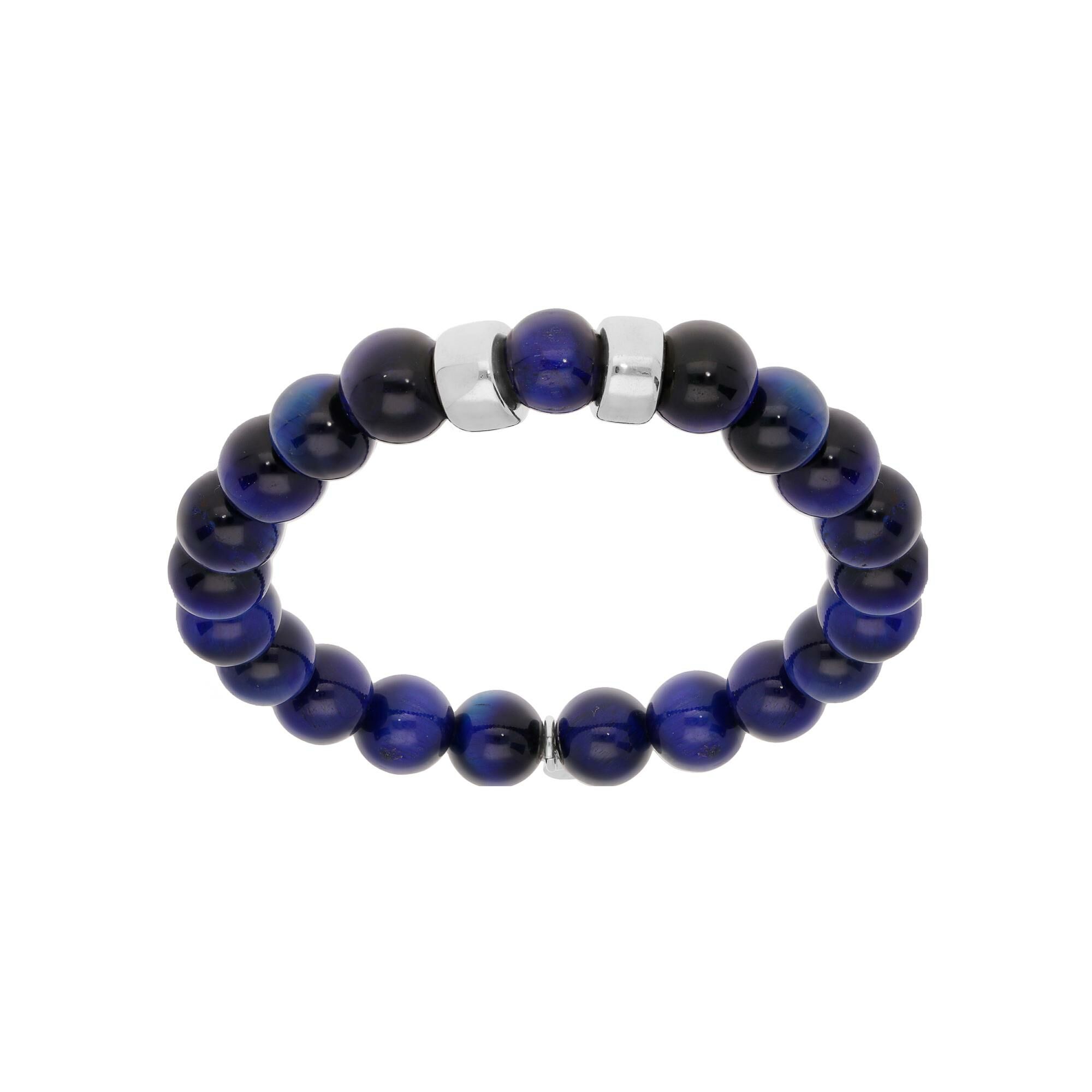 Bracelet argent rhodié extensible boules oeil de tigre bleu véritable 2 charms à graver