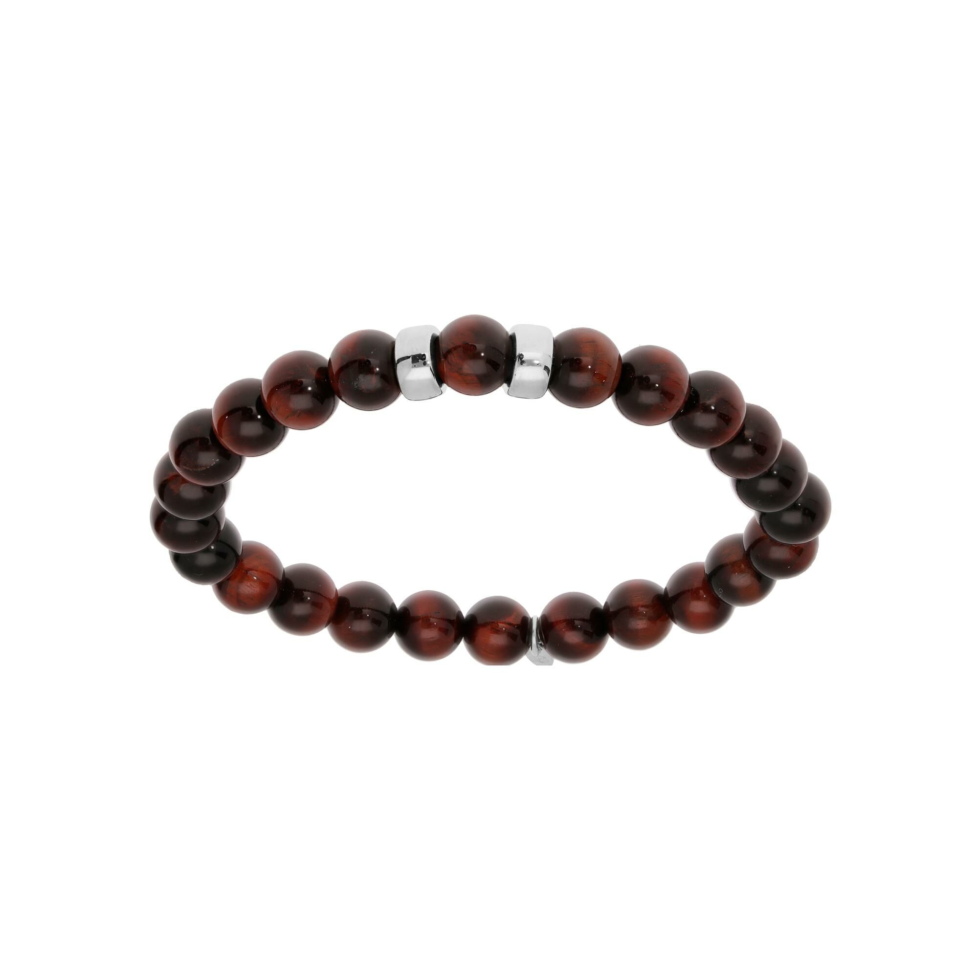 Bracelet argent rhodié extensible boules oeil de tigre rouge véritable 2 charms à graver