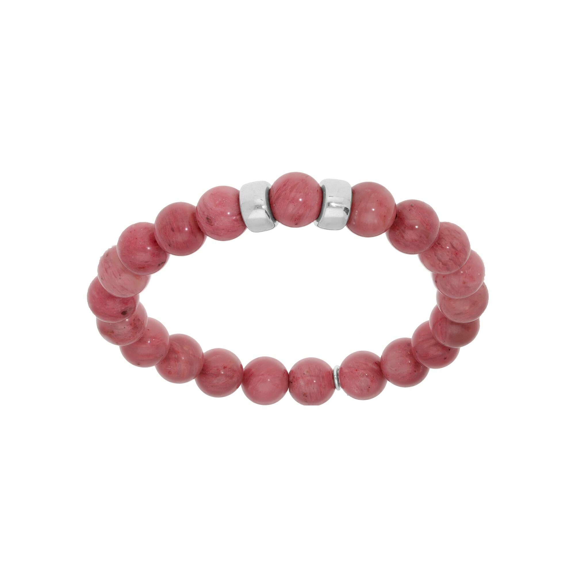 Bracelet argent rhodié extensible boules rhodocrosite rose véritable 2 charms à graver