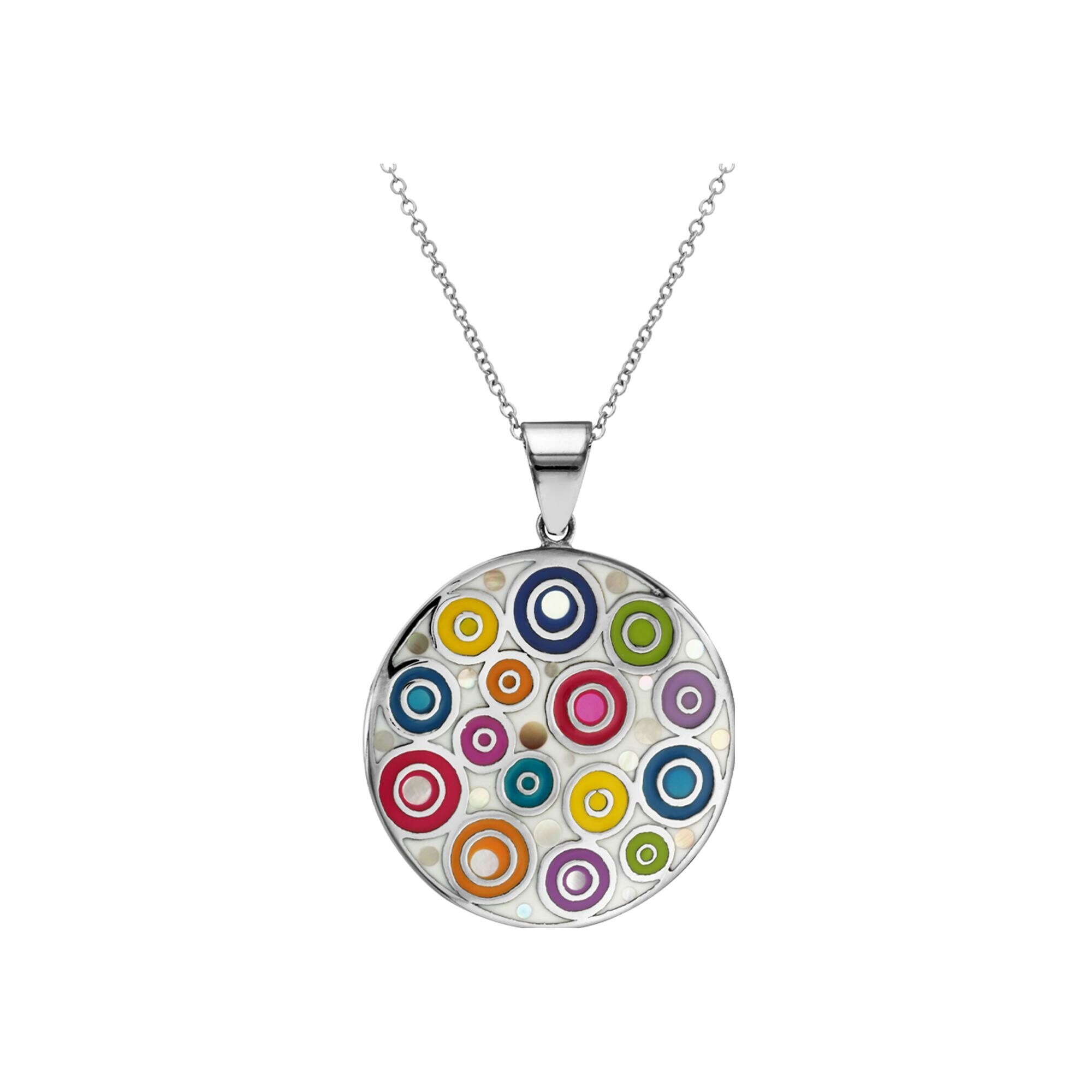 Collier acier stella mia rond motif rond avec nacre en 45 cm + 10 cm