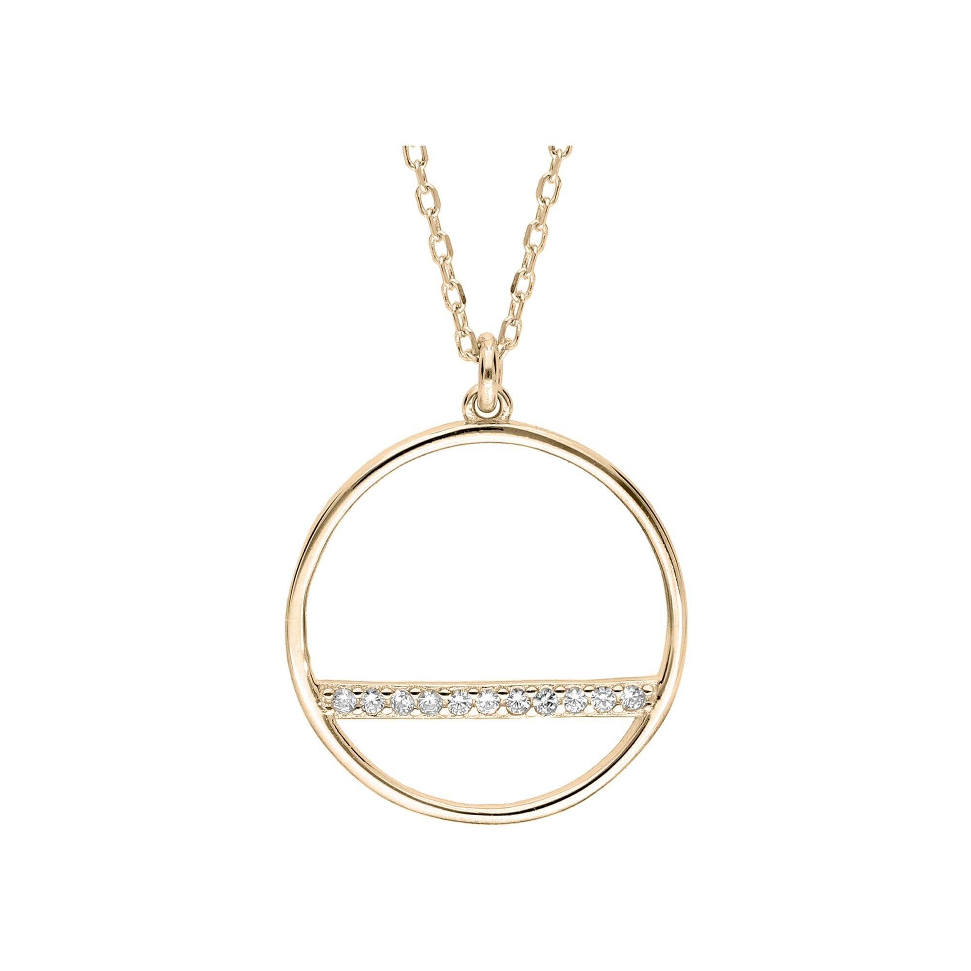 Collier plaqué or pendentif cercle avec barette oxydes blancs sertis 40+4cm